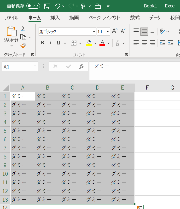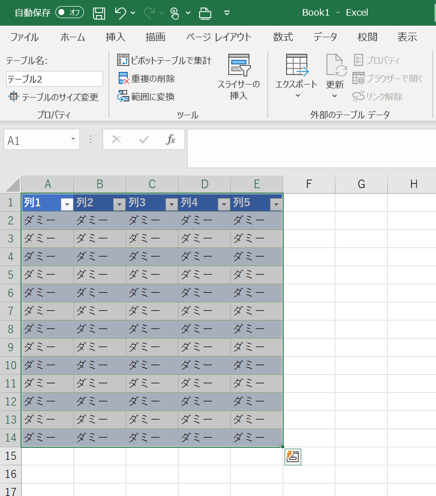 次のやり方はデータを「テーブル」形式にするやりかたです。これが一番簡単です。