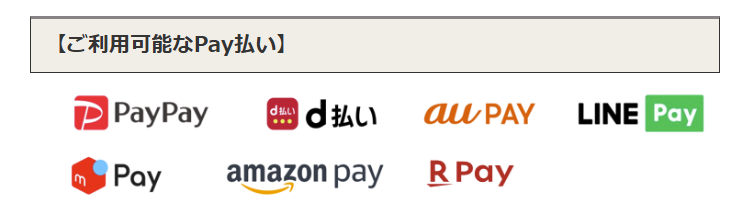 当初このpay払いがスタートした時はもう少し種類が少なかったと記憶していますので、だいぶ種類が豊富になってきたという印象を受けます。