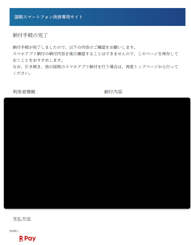 個人の確定申告に関する税金をスマホ(楽天ペイ)で支払いをする経験する機会がありました。