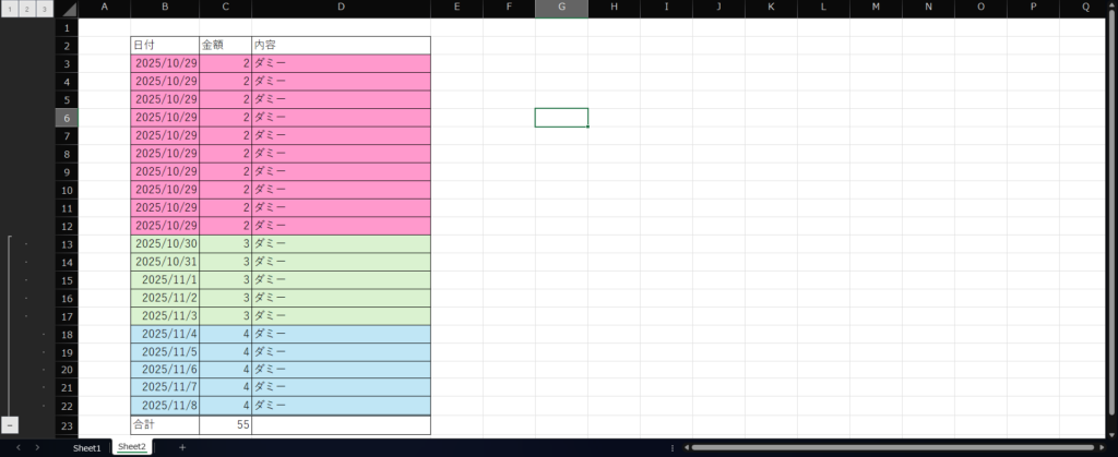 Excelのグループ化機能を使って、連続したデータを段階的に表示する方法はどうすればよいのか。 少しつまずくことがありましたので自分への備忘記録として記事に残しておこうと思います。 Excelのグループ化で連続したデータを段階的に表示するイメージ 今... -