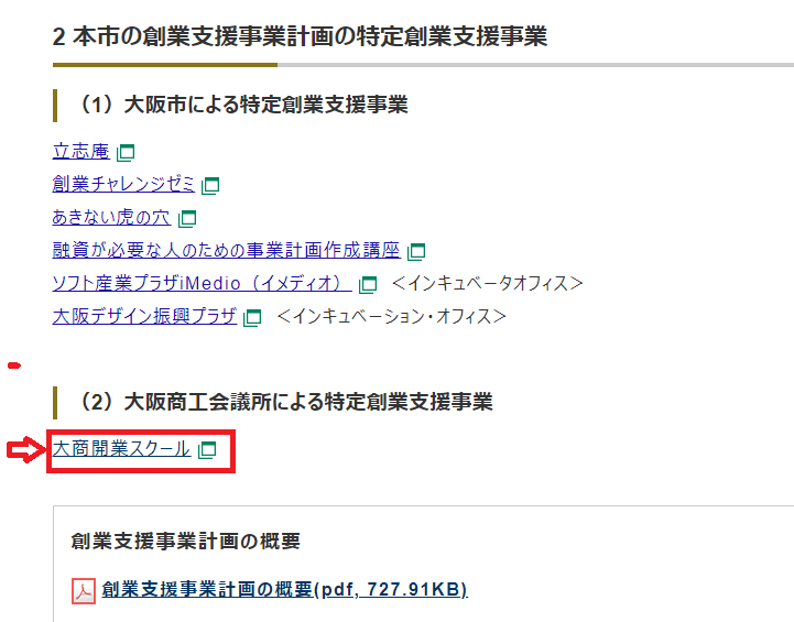 進んだ画面の下の方に<大商開業スクール>があるのでクリックして