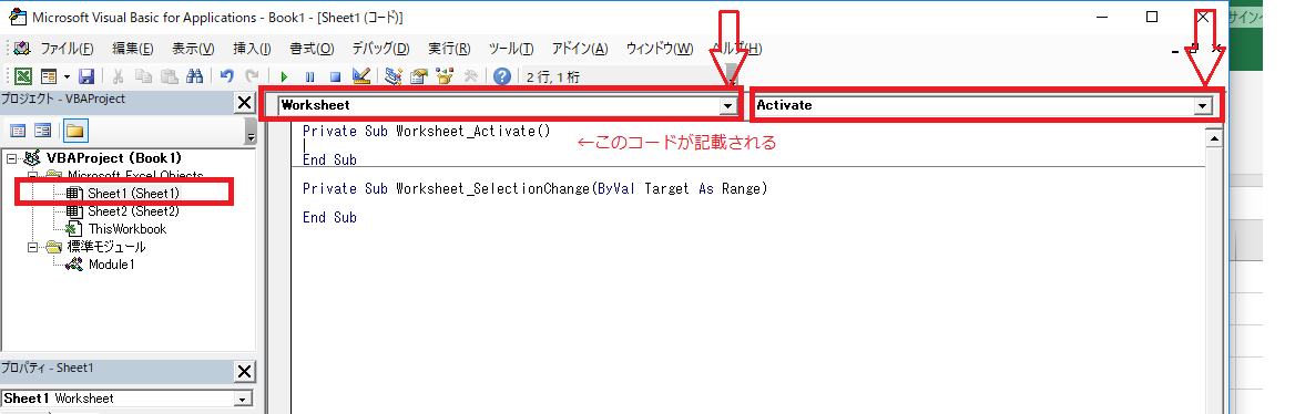 次に、画面の左側にあるSheet1(Sheet1)をダブルクリック