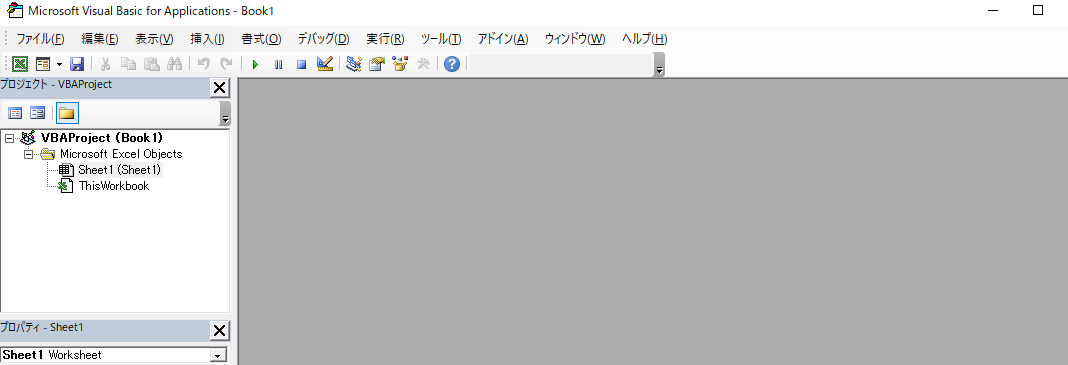 エクセルを開き、Altキー+F11でマクロの記述画面を表示します。