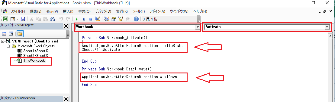 次に、画面の左側にある<ThisWorkbook>をダブルクリック