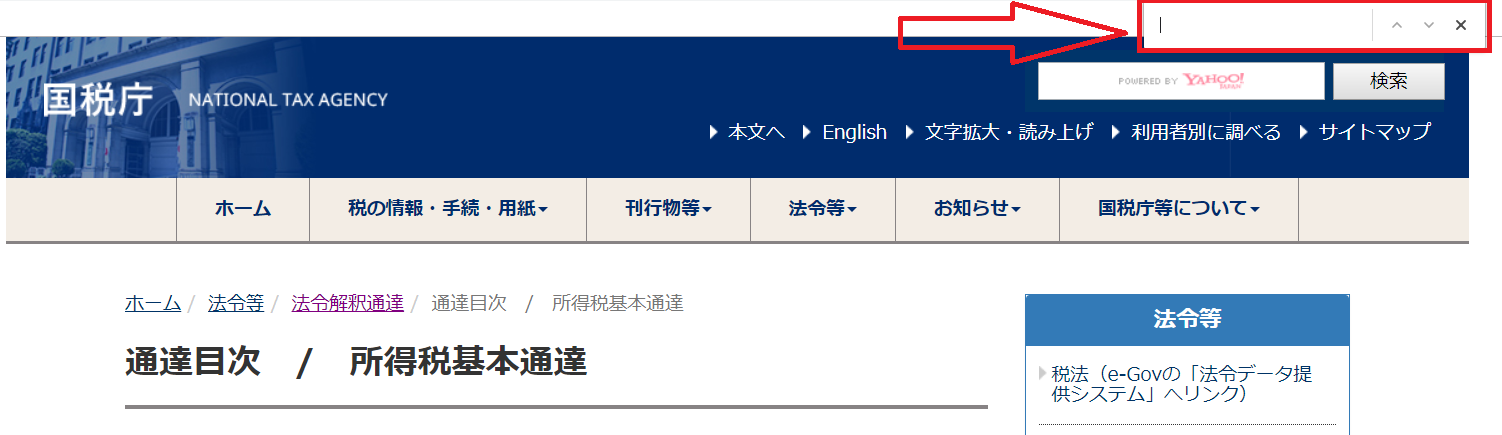 こんな時はキーワードで画面内検索(ページ内検索)を行うと便利です。