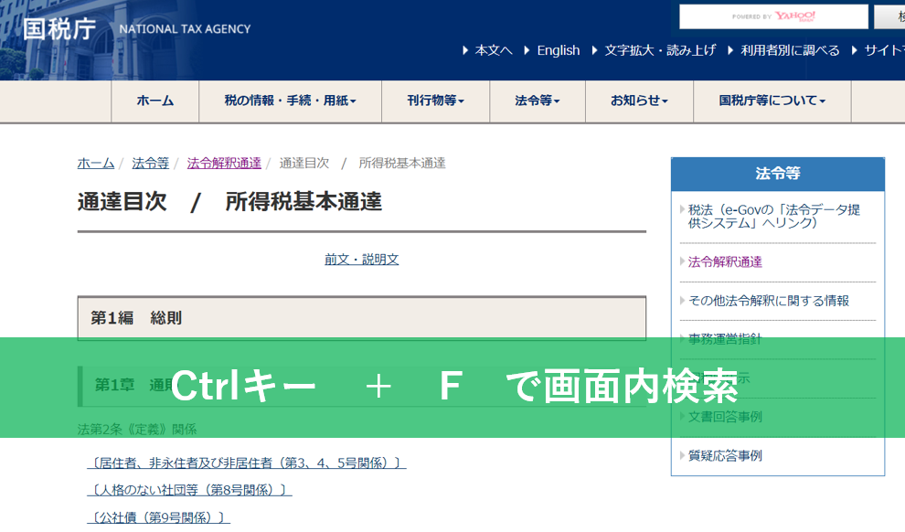 そんな時にいちいち条文を見ていくのは面倒なのでCtrlキー+Fでキーワードを検索しています。