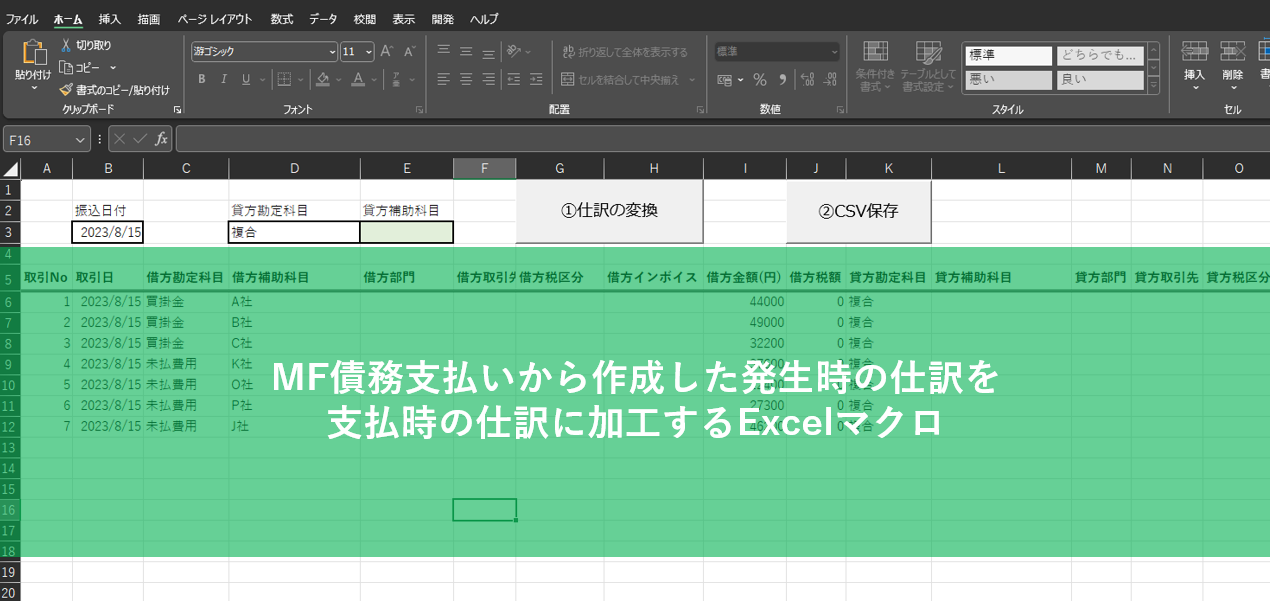 マネーフォワード債務支払で作成した発生時の仕訳をベースにして総合振込などの支払時の仕訳を作成するExcelマクロ
