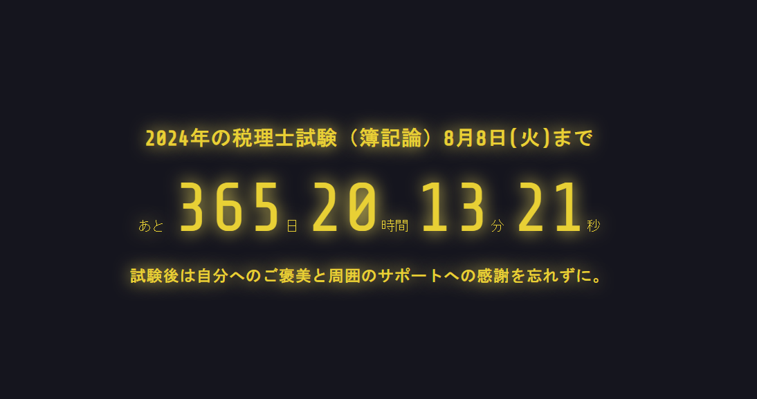 2024年の税理士試験カウントダウンタイマーはこちらから確認できます↓