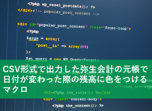 マクロを使ってインターネットバンキングのデータで日付が変わった時の残高に色をつけるようにしました。
