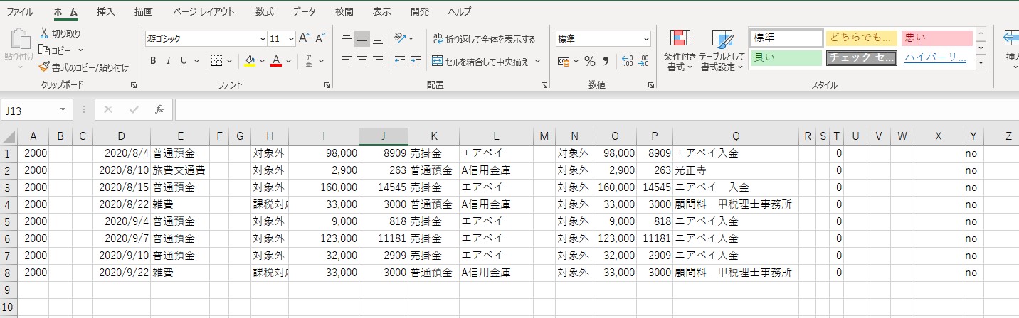 どうしても同じ摘要にしたい場合は摘要欄の最後に空白スペースを入力しておくなどして対処しましょう。具体的にはyayoiadd(16)=”エアペイ入金 ” などと空白スペースをいれておけばよいです。
