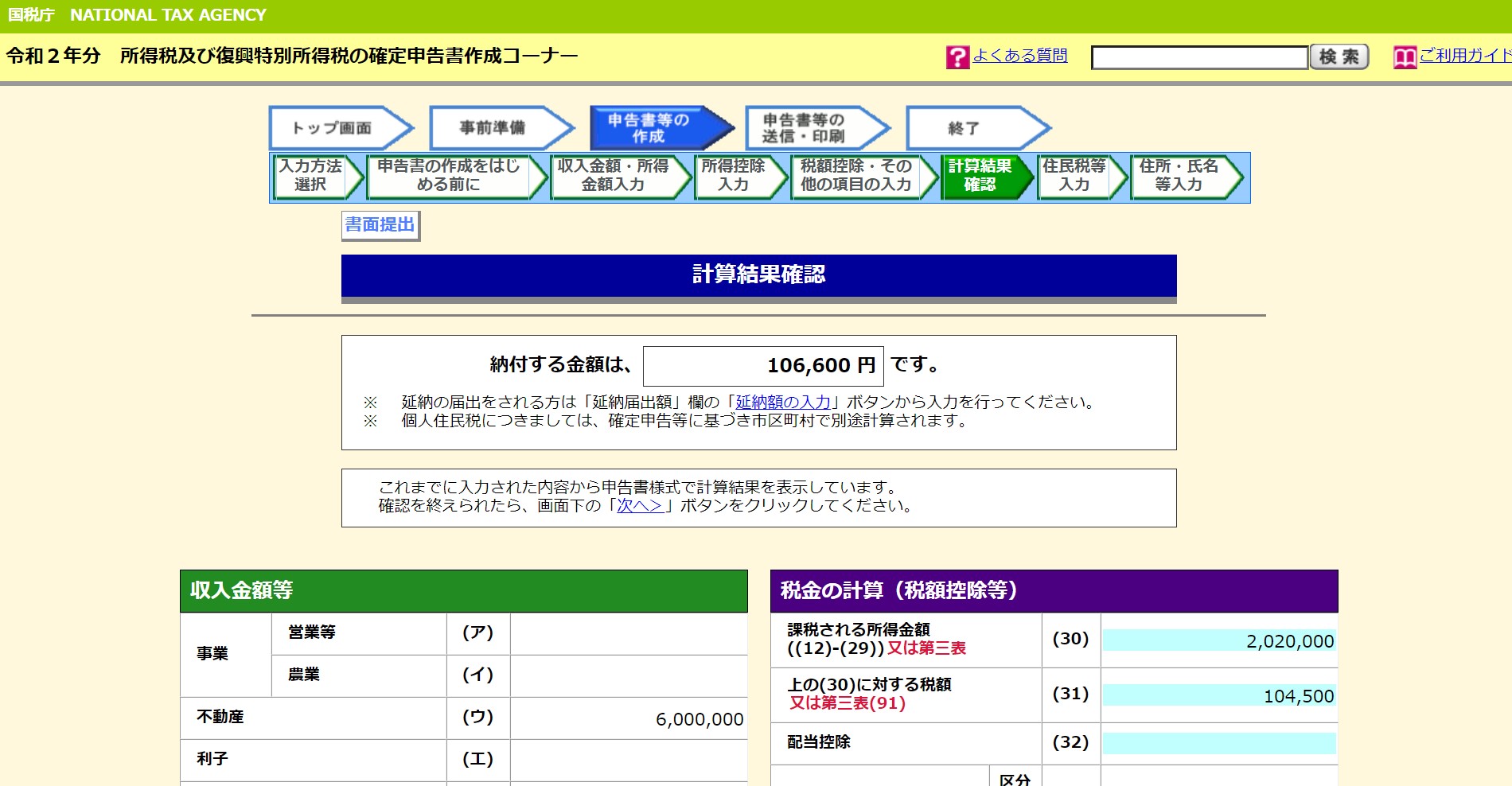・確定申告の申告期限内である3月15日(※2019年分と2020年分の確定申告については新型コロナウイルスの影響により、申告期限が延長されております)までに無事に申告が完了している。(例えば2月3日に申告が完了している。)