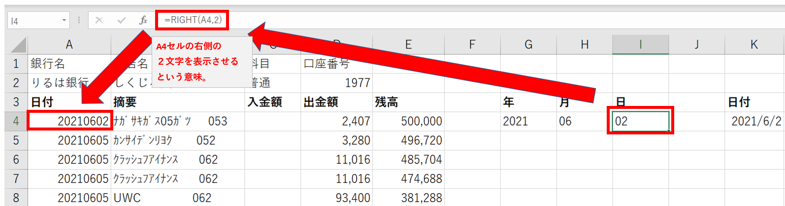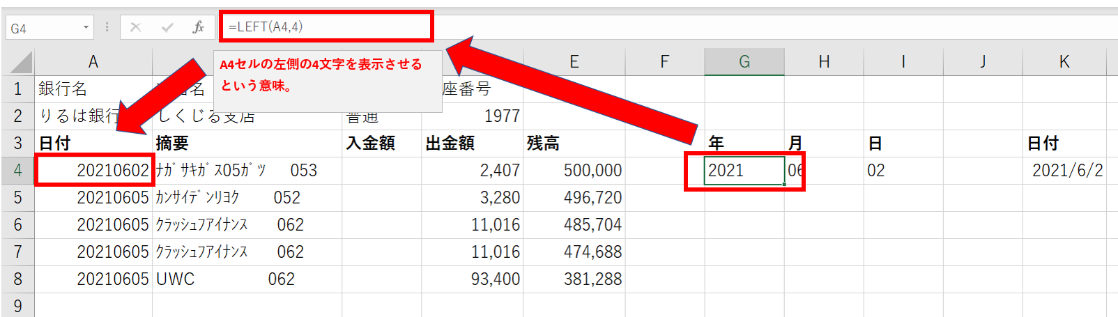 インターネットバンキングの日付データをExcel関数を使って加工する。