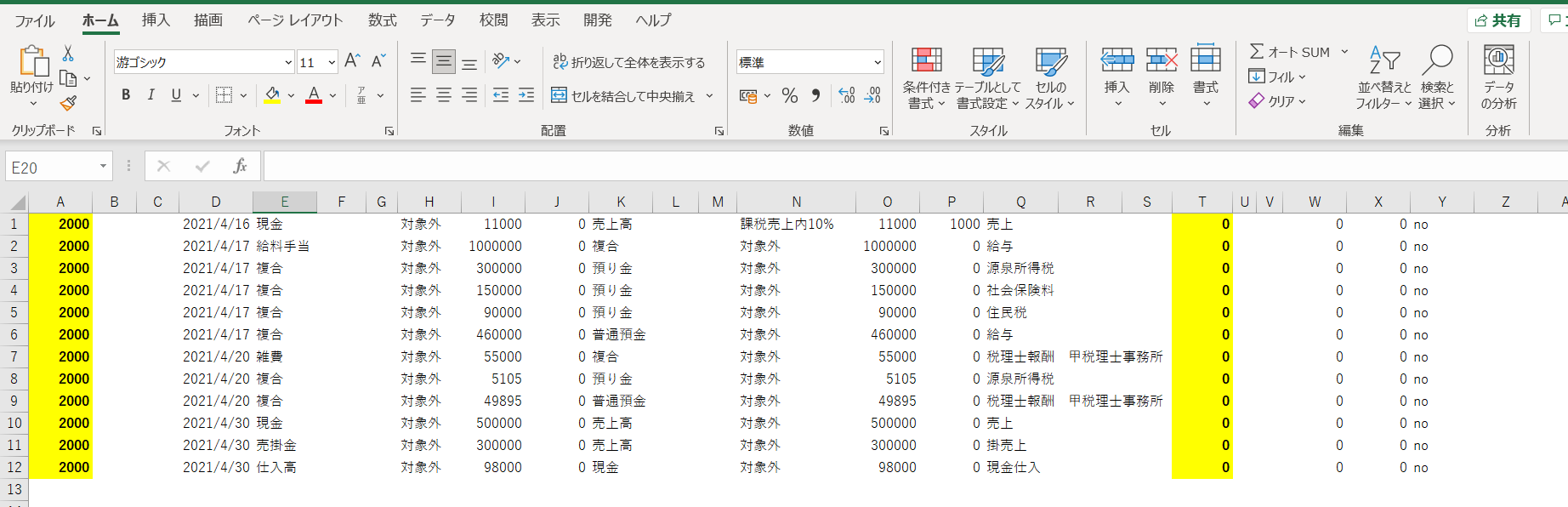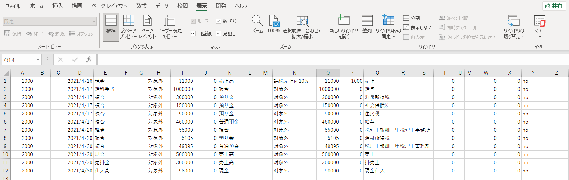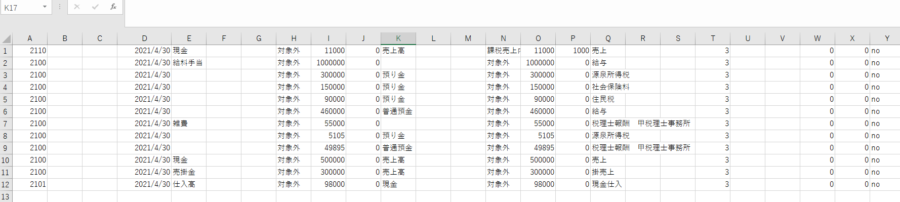 で、これを弥生会計にインポートするとこんな感じになります↓