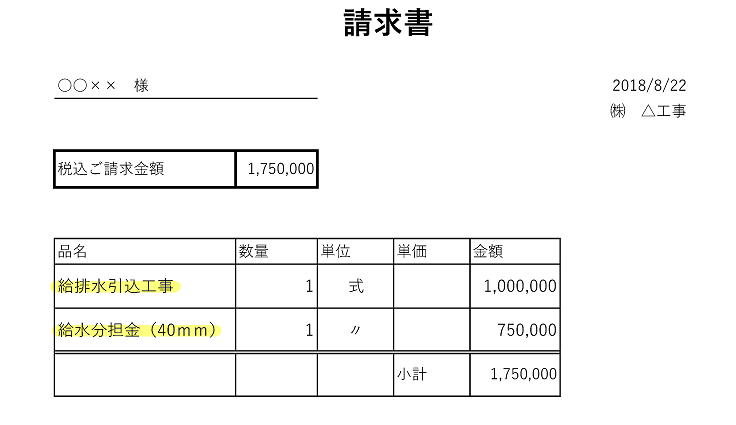 先日、賃貸用建物を建設中の顧問先から届いた資料の中にこんな感じの請求書がありました。