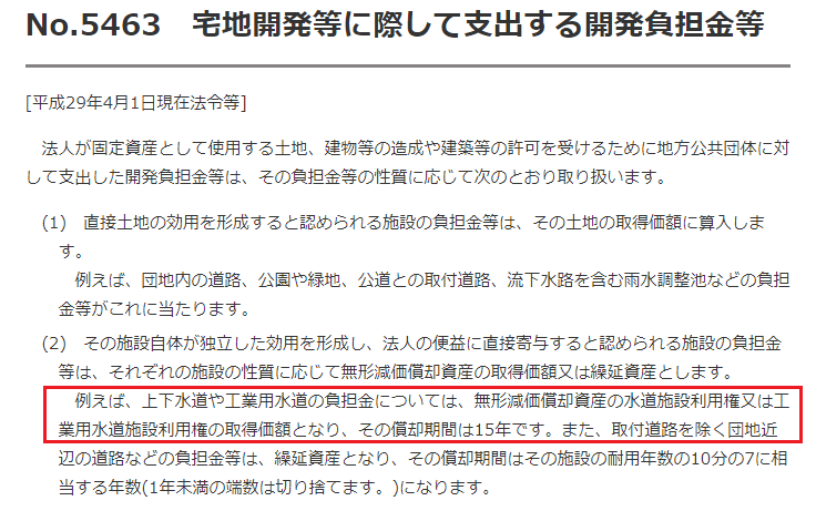 <給水分担金>については無形固定資産として耐用年数15年として処理