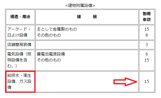 <給排水引込工事>は建物付属設備として耐用年数15年として処理、