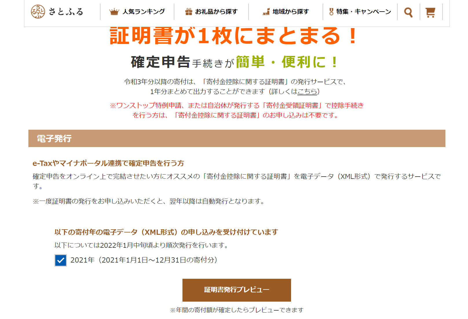 今回ふるさと納税サイトの「さとふる」から証明書を取得しました。