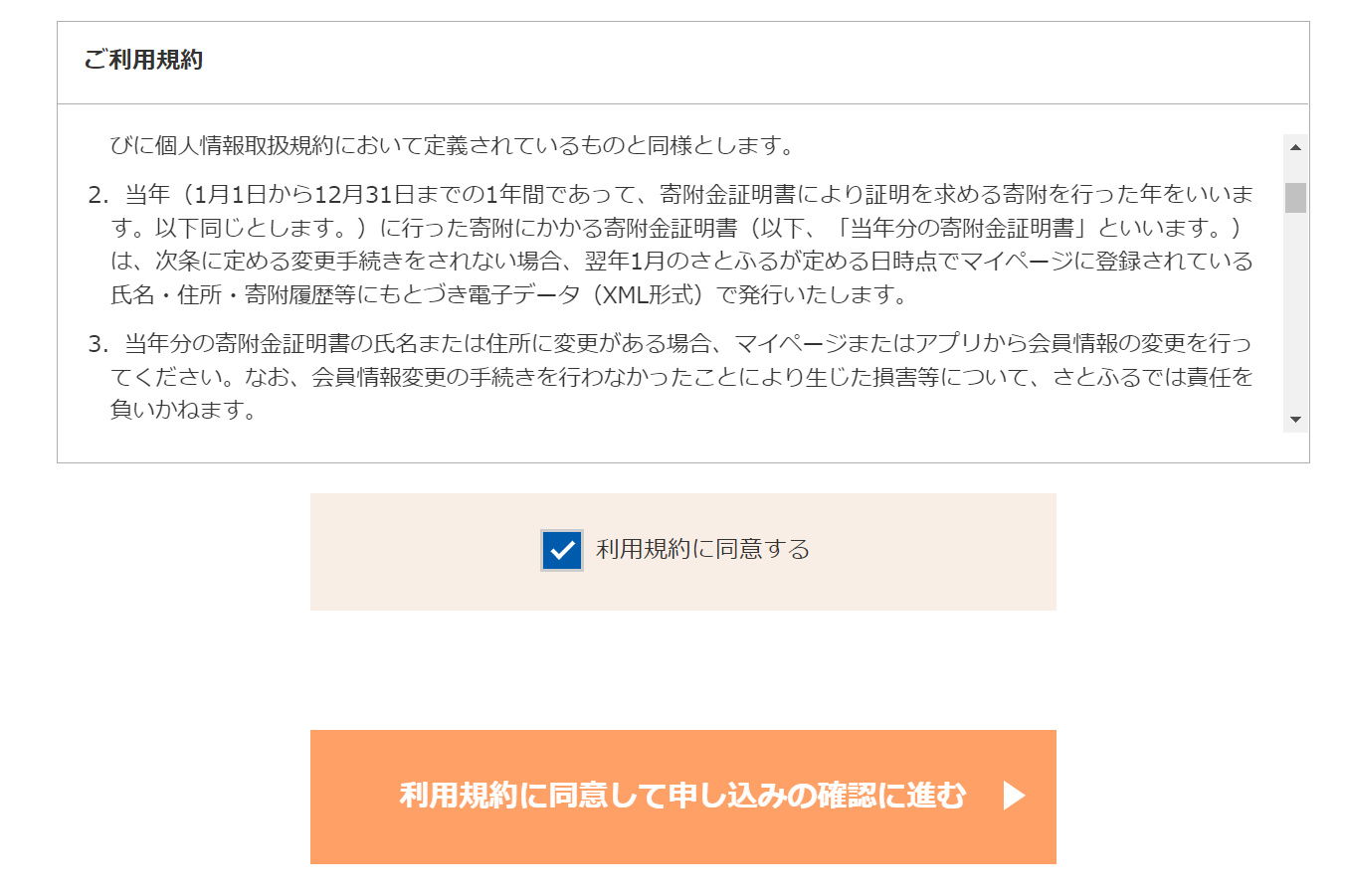 「利用規約に同意する」にチェックをいれて次に進むと「さとふる」に登録しているメールアドレス宛に証明書のデータが送付される旨の画面が表示されます。