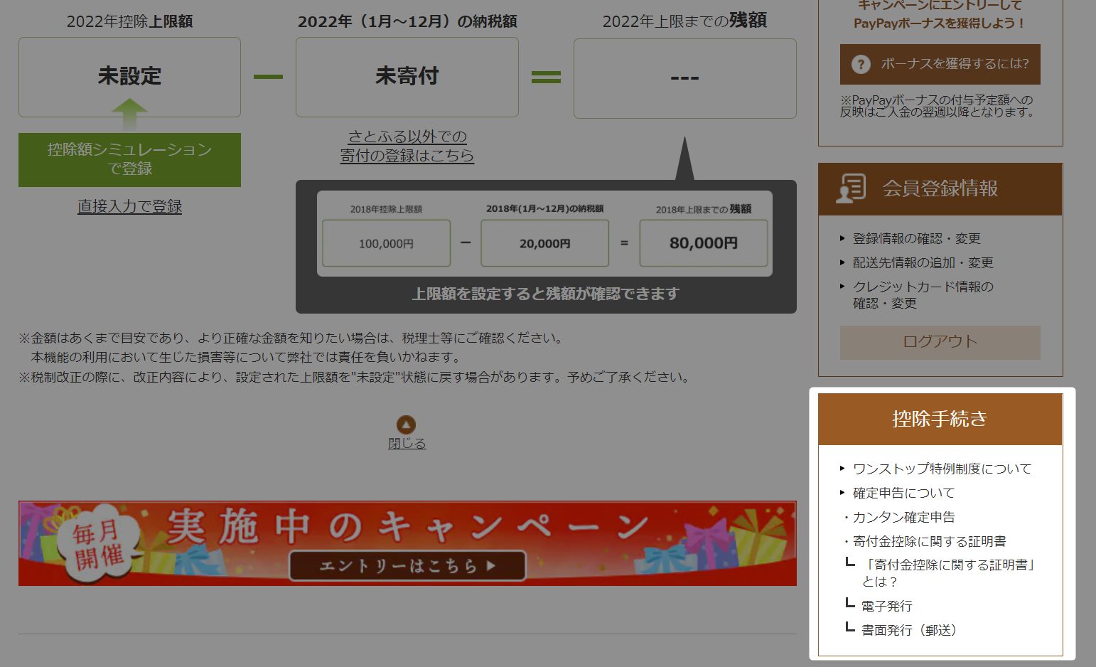 事前準備 ふるさと納税をおこなったサイトから証明書の発行を依頼する ふるさと納税サイト【さとふる】の場合