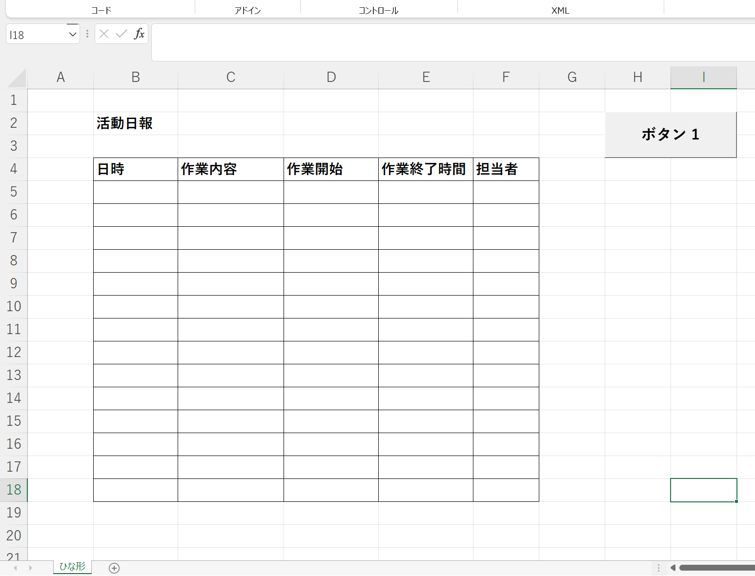 今回はやりたいことはこんな感じで、Excelのシートに作ってあるひな形を、