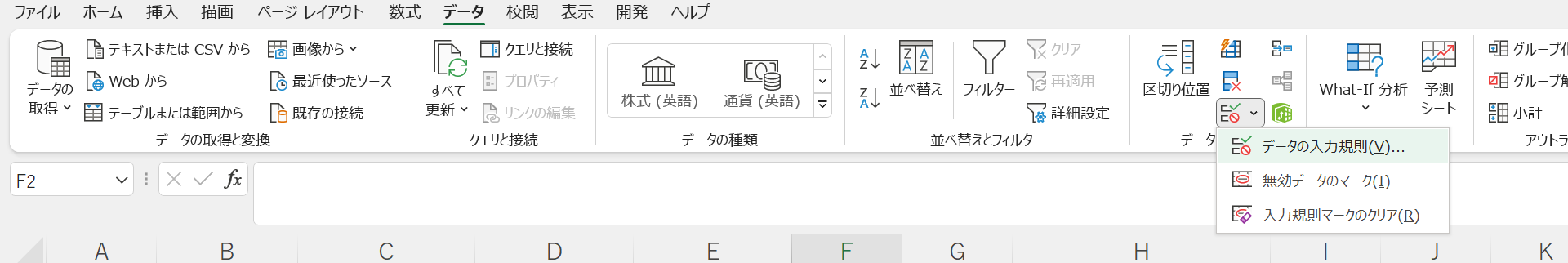 おまけ。エラーにさせないためにセルに入力規則を設定しておく