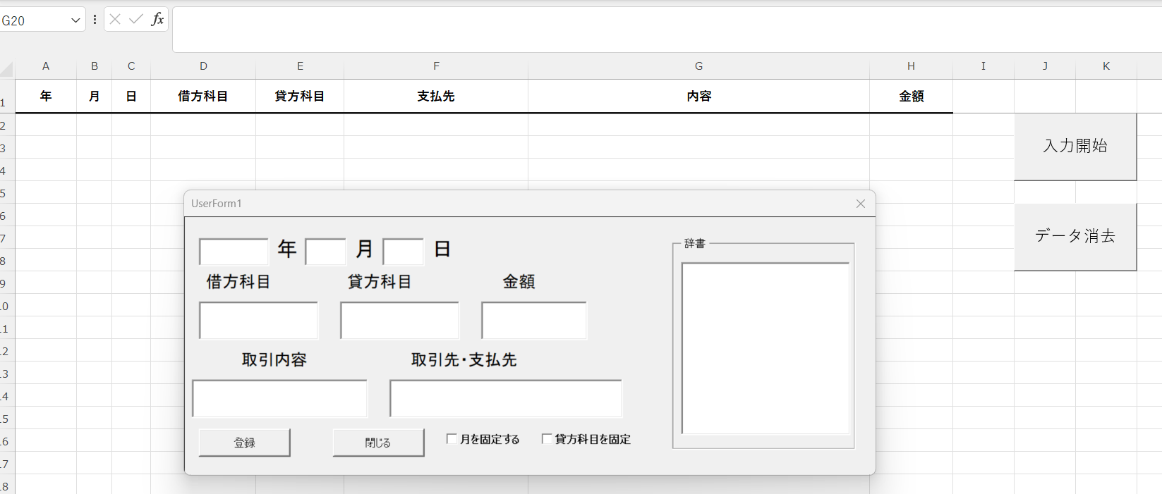 弥生会計やマネーフォワードクラウド会計への仕訳インポートを少しだけ楽にしたくて作成したユーザフォームに機能を追加して「特定の項目を固定する機能」を追加する個人的方法を記事にしました。