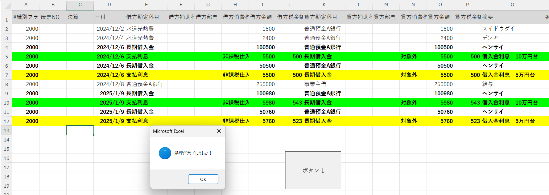 そういった場合に、返済金額の違いに応じてそれぞれ異なった仕訳を追加するにはどういったExcelマクロを書けば良いのか考える(実際に考えたのはChatGPTですが)ことがあったので記事にしておこうと思います。