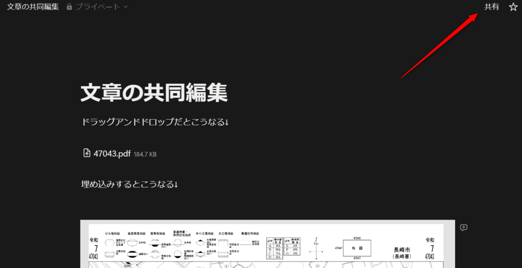 PDFファイルをNotionのページ上にドラッグアンドドロップするだけでは埋め込むことはできませんので注意が必要です。