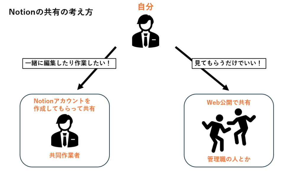ページを共有して共同で編集するのか、それとも閲覧だけしてもらって訂正箇所などについては指示をもらう(編集させない)のかの判断基準は、相手方のNotionに対する経験値だったり、その人がNotionに対応可能なITスキルがあるのかどうか、今後もNotionを使う機会があるのかどうかといった要素から総合的に判断すればいいかと思います。