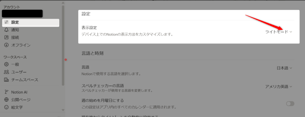 Notionのテーマで「ライトモード」を選択している場合には作成するページが白地(背景色が白)になります。
