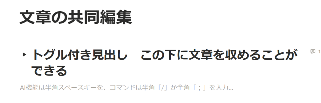 トグル見出しを使って文章の非表示・展開を行うにはページ上で「/to」と入力