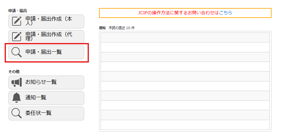 ちなみに保存したデータはJCIPにログイン後に表示される業務メニューの「申請・届出一覧」に保存されるので、