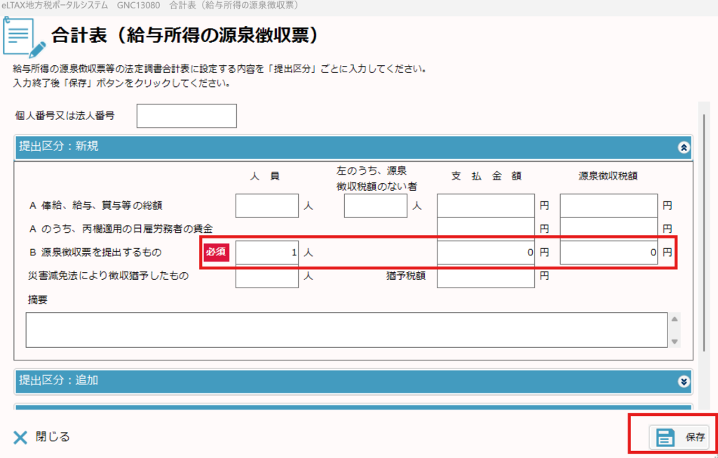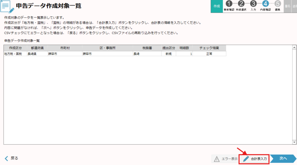 画面右下の「合計表入力」からデータを作成しないと次に進めません↓