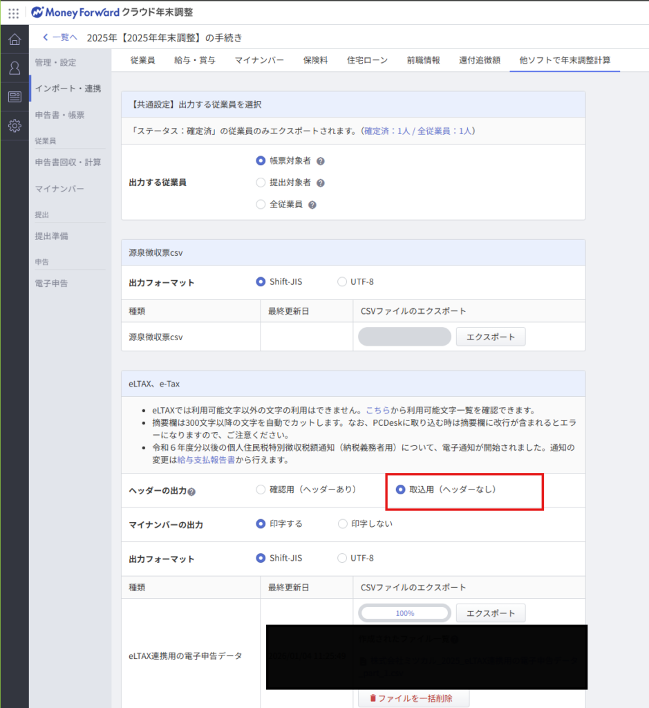 マネーフォワード年末調整から出力したCSVデータをPCdeskでそのまま読み込んで電申告しようとすると、