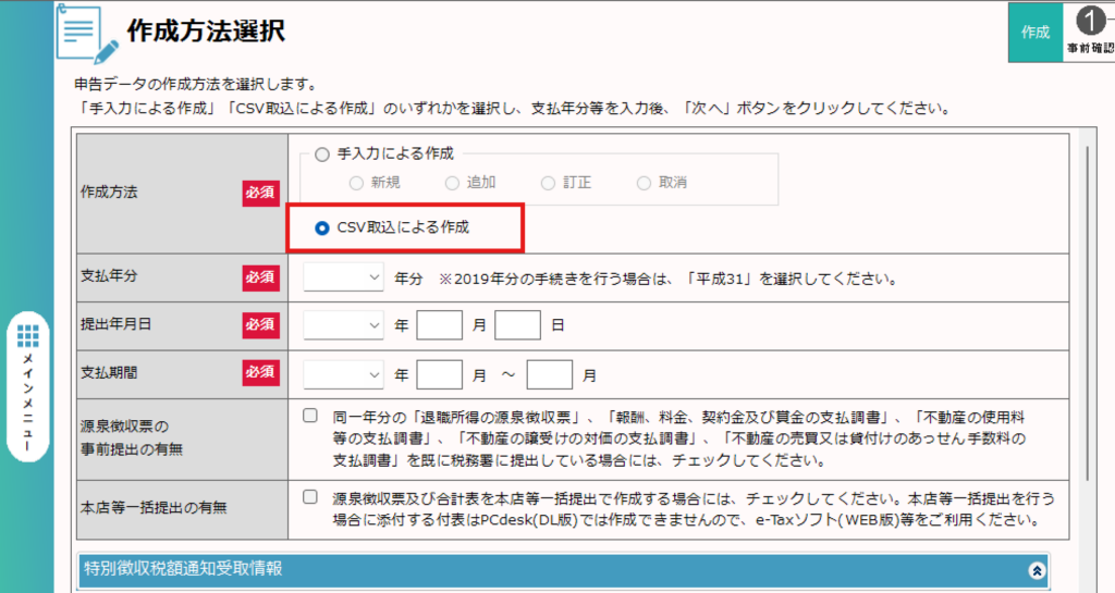 - 税務署に出す源泉徴収票や法定調書はPCdeskで作成・送信したくない