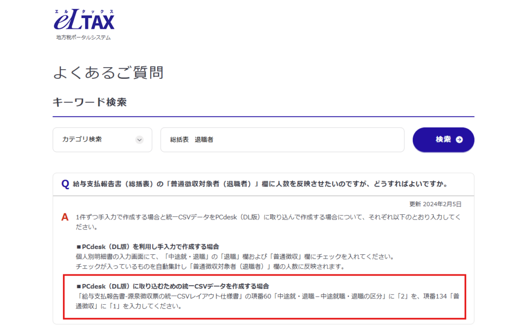 eLTAXの質問コーナーで